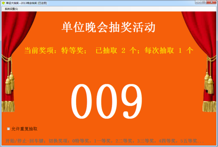 2、使用數字鍵進行切換獎項,0為特等獎,1為一等獎,2為二等獎,如此類推;